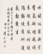溥杰自幼受到严格的书法基础训练,工行书,初学虞世南,后受其业师赵世骏影响而自成一体,所作隽秀爽健,婀娜多姿。生前为中国书法家协会名誉理事,全国人大民族委员会副主任委员。