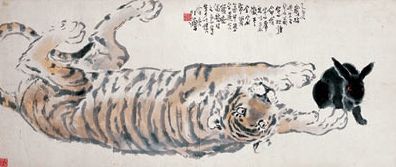 虎,是万兽之王,是人们心目中的英雄,是祛邪、避灾、祈福的神灵。它以镇定从容的气概,威猛、强悍、舍我其谁的王者风范,成为人们的精神图腾。虎,也是历代画家致力研究的课题,以虎为题材的国画千姿百态,受到历代人们的喜爱。虎画艺术丰富了中华民族传统文化的宝库,是艺术之林中的一朵奇葩,虎画作品也成为美术界一道独特的风景。